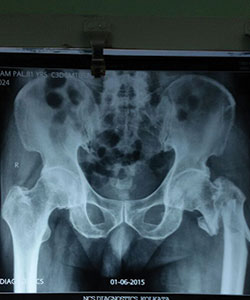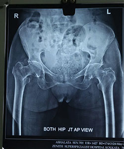 70 Years female presented with right hip fracture following a fall in the bathroom