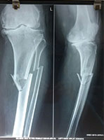 Post op xray tibial fracture fixed with interlocking nail