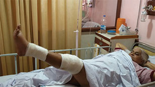 Patient walking 24 hours after operation for patella fracture