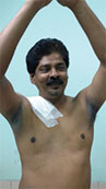 Patient lifting hands day after operation