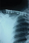 post operative x-ray showing fracture fixed with plate and screw