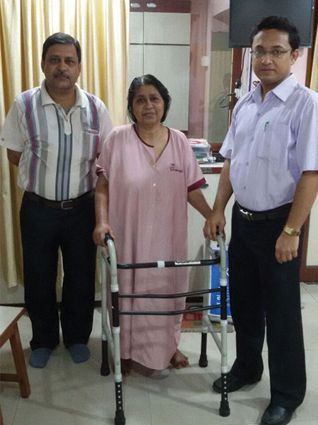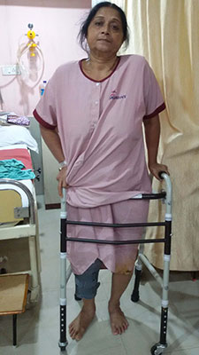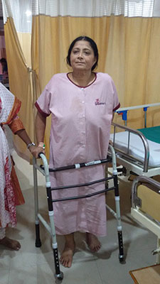 Patient is walking with walker support 4 weeks after operation