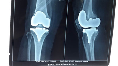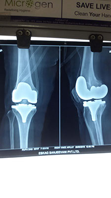 54 years female was suffering from both knee pain for last 4-5 years. She had bilateral advanced osteoarthritis knee.