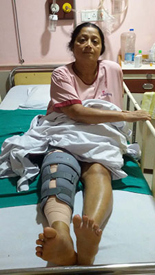 70 Years female fell in the bathroom and sustained injury to his left leg. She had fracture of left leg (tibia and fibula)